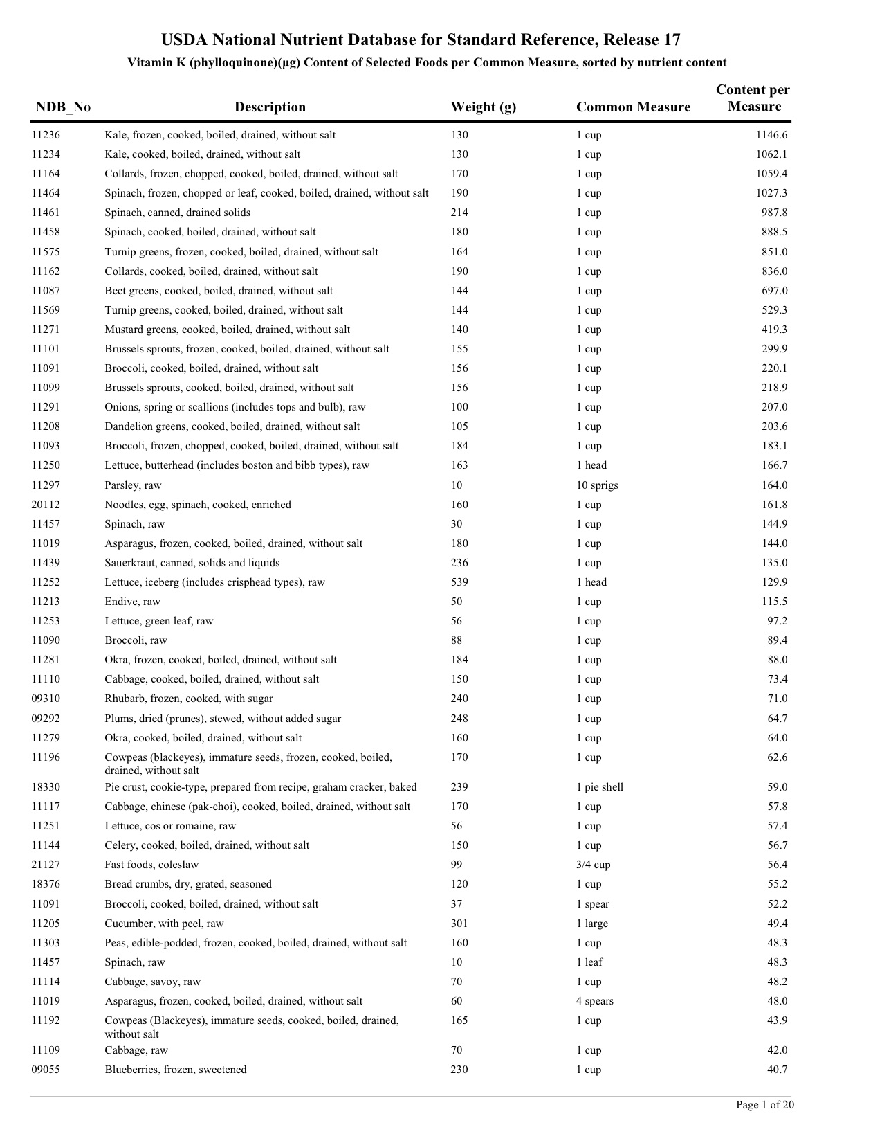 Food sources of Vitamin K1