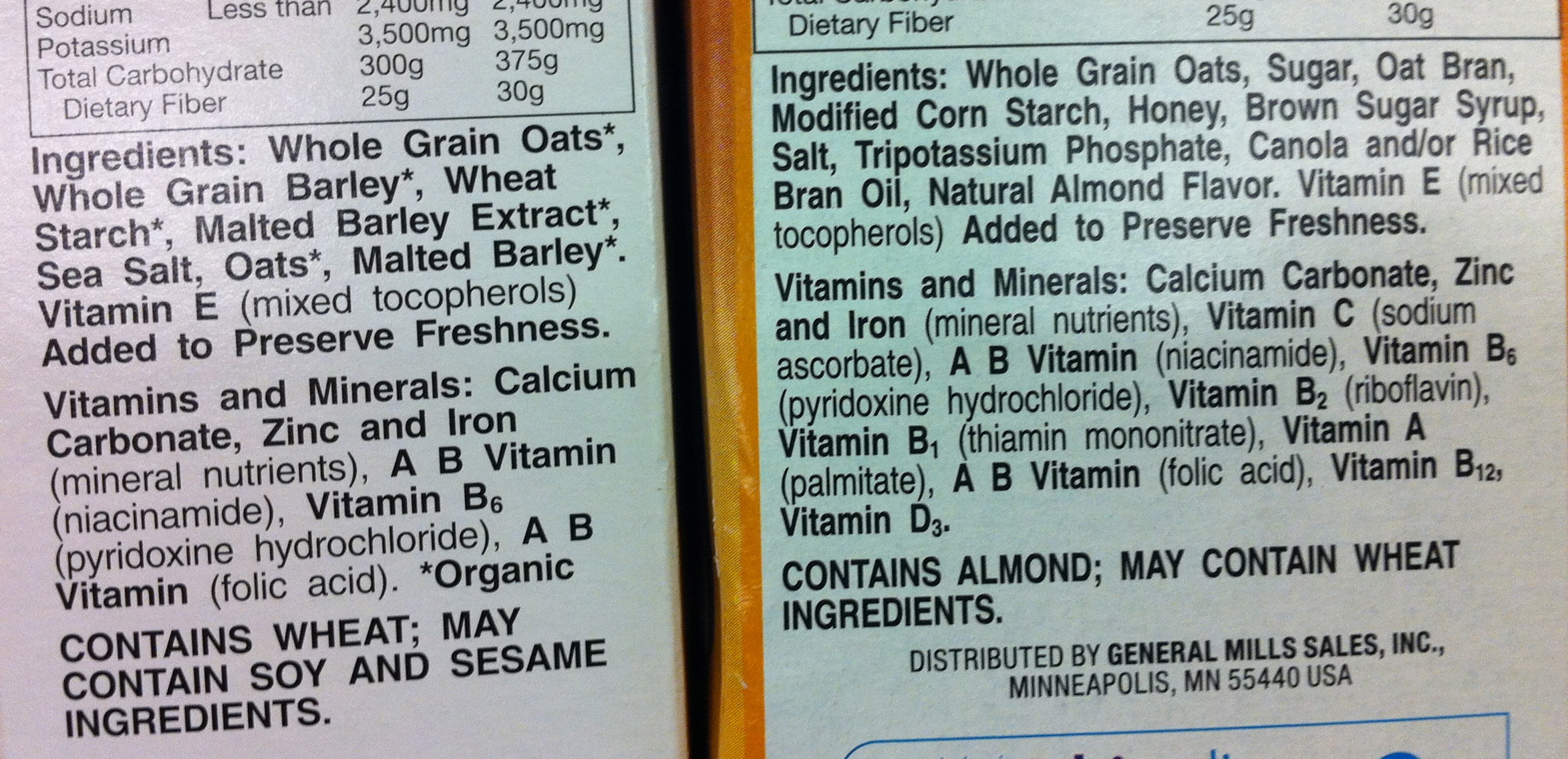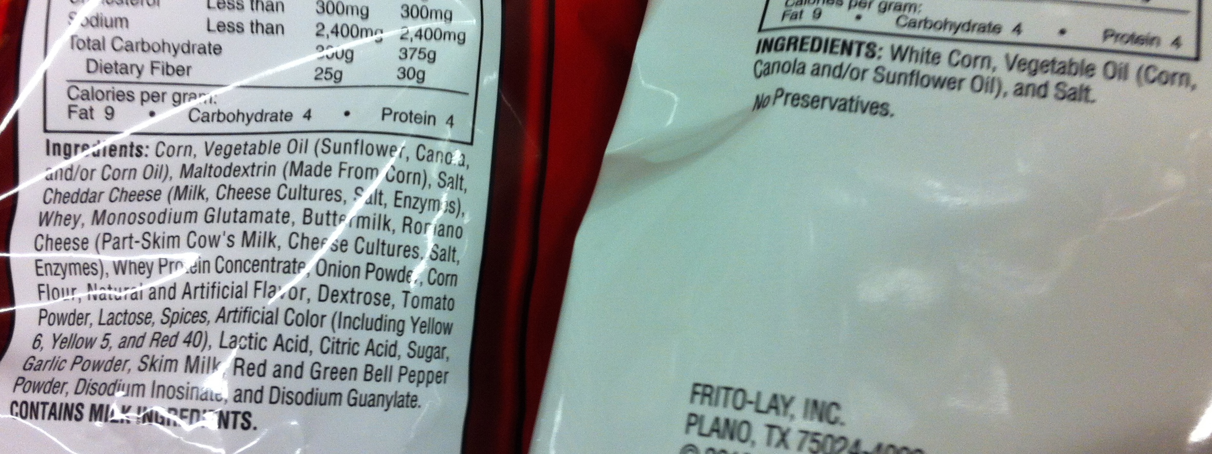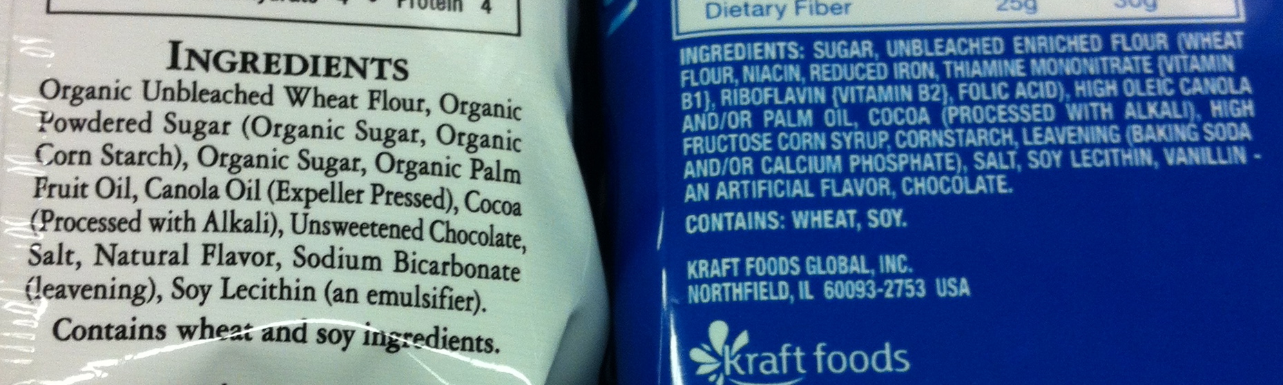 […] Making Better Choices – Some side by side comparisons of similar products (tuna, butter, yogurt tubes, chips, cookies, cereal, peanut butter, granola bars, oatmeal) […]