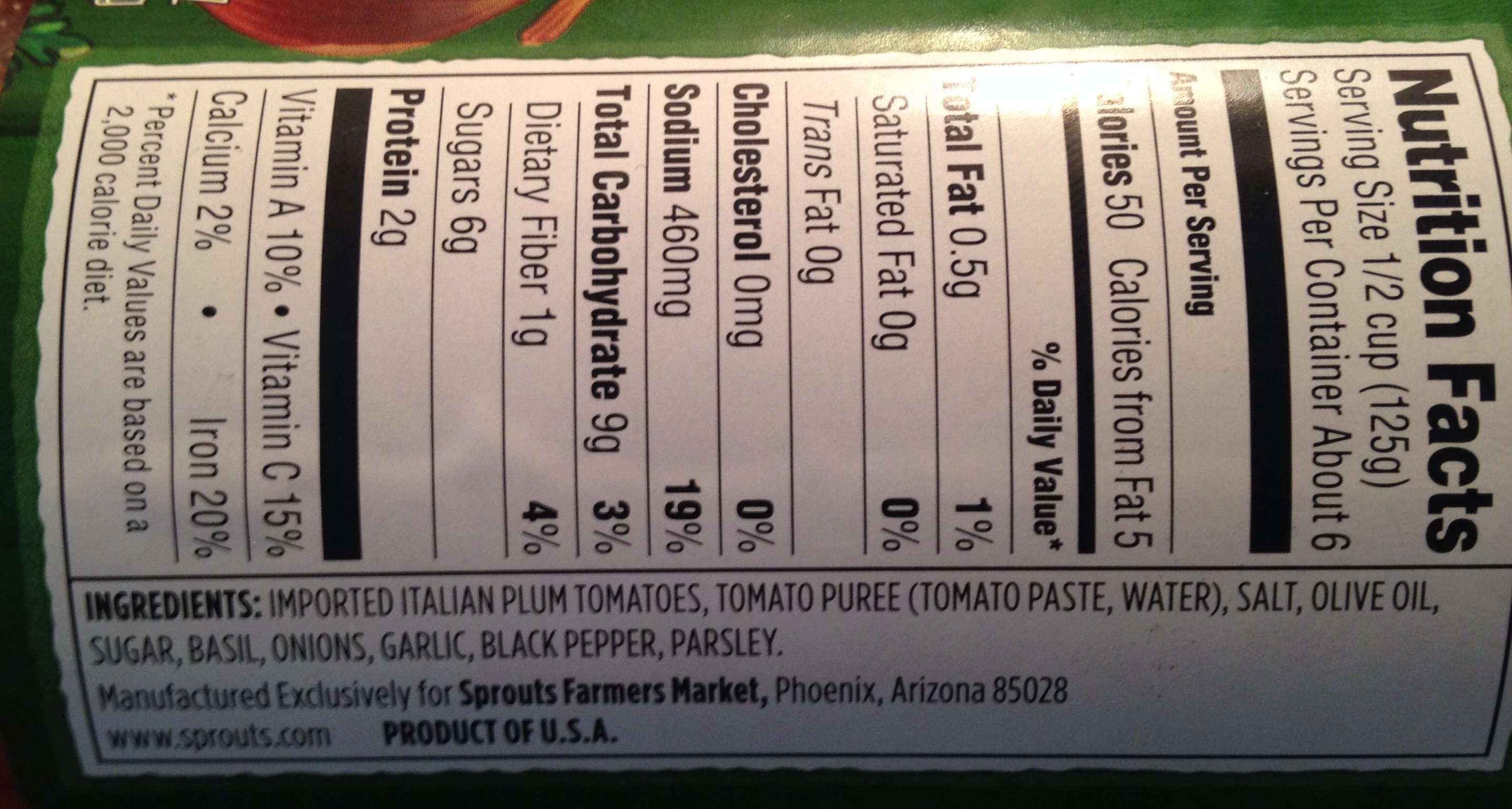– Look at serving size and servings per package/bottle/box, often nutritional info is deceiving because of small serving sizes.