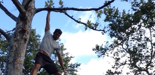 Think of climbing a tree. One leg raises up to a higher branch and the upper body pulls up to assist raising the body higher. Another of the primal movements. Since most of us don’t climb trees we can think of this as two sub concepts of stepping up and pulling ourselves up to something.