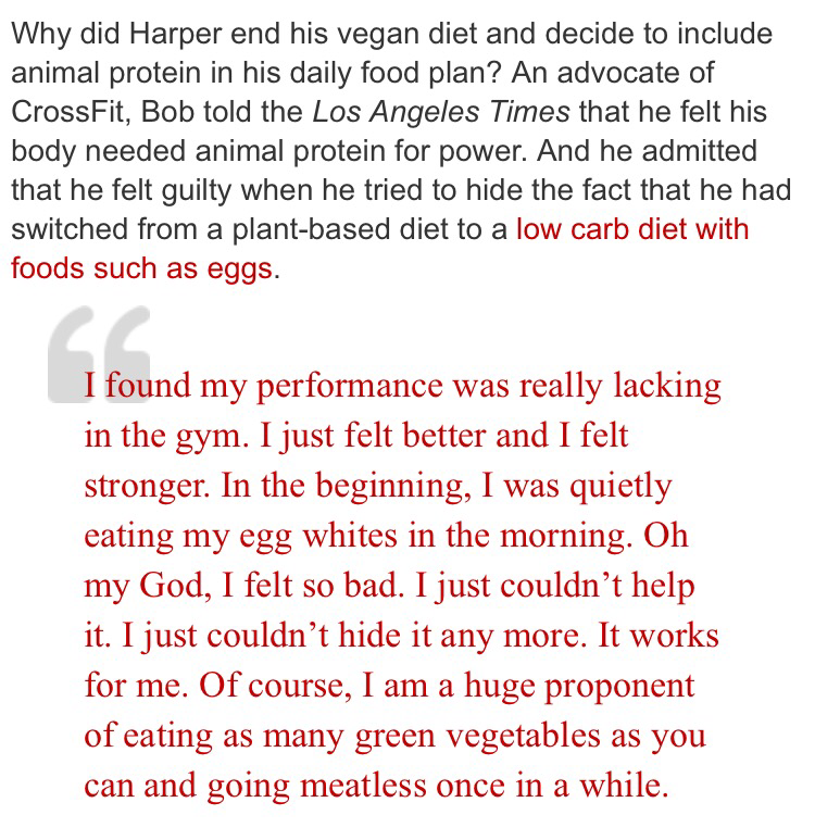 What a fascinating dynamic. People can be preaching one lifestyle one moment and then decide it doesn’t work for them anymore and have to secretly change or do so with guilt and fear their credibility or livelihood is on the line. Goes to show you how careful we need to be with what we believe or take as truth, particularly when from the mouth of a celebrity. Now it doesn’t mean veganism is bad or he was wrong for preaching it, it means we all have to critically think about what we come across because his experience is very common. I don’t find anything wrong with it actually, as long as you’re willing to change. He found benefits from vacationing to Vegan-land but that it wasn’t his long term solution. Nothing wrong with that and hopefully he’s better off for this experience. Who knows, he may even find he wants to go back to veganism again some point down the road and if that’s what works for him, great. He shouldn’t have to feel shameful or guilty for trying to keep on top of what works for him, even if it changes. I applaud anyone who is willing to do this, particularly if they have been committed to one extreme or another.