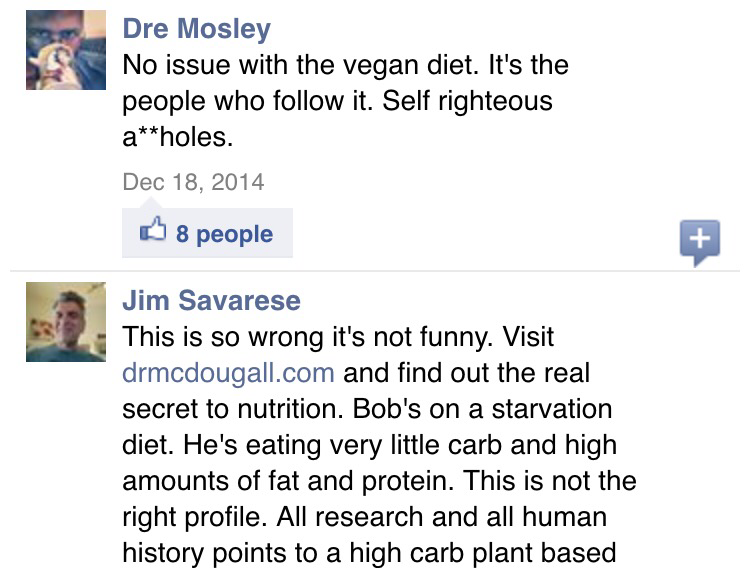 Even more interesting to me than the actual diet revelation discussion is the comments that follow an article like this. After a reasonable first comment, this was what followed…