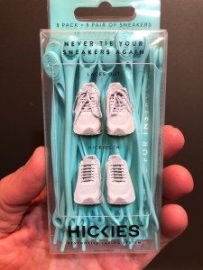 It was for a product called Hickies – No Tie Elastic Shoelaces. These were, in essence, rubber bands that replaced your laces and stretched to fit you feet. Interesting. The concept of laceless shoes have been around for a while but this was the first of this kind I had ever seen. So like any normally impressionable consumer I immediately found myself thinking “oh my kids would love not having to tie their shoes all the time and the puppy wouldn’t have as many laces to chew on!” A few days later, a couple pairs of Hickies showed up in my mail box…