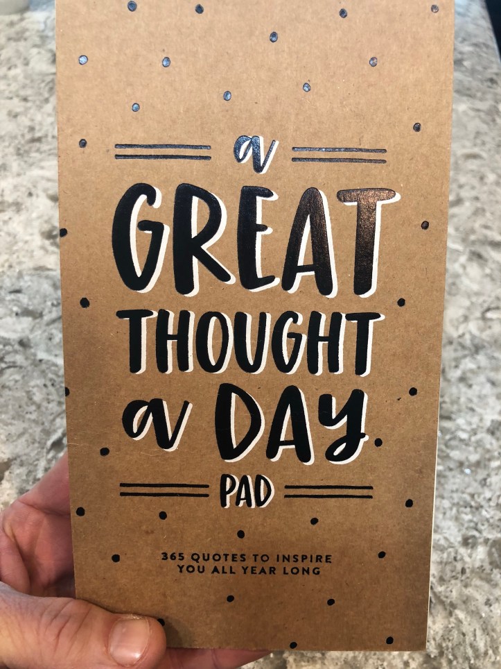I love quotes. There’s so much wisdom, perspective and good advice we’ve had over the years from people throughout the world and all walks of life. It’s so easy to get caught up in the whirlwind of life and forget the simple stuff. People have been through it all and learning from others is a lost practice these days. Thanks to my wife’s awesome Bunco skills, she brought home a note pad yesterday titled A Great Thought a Day…